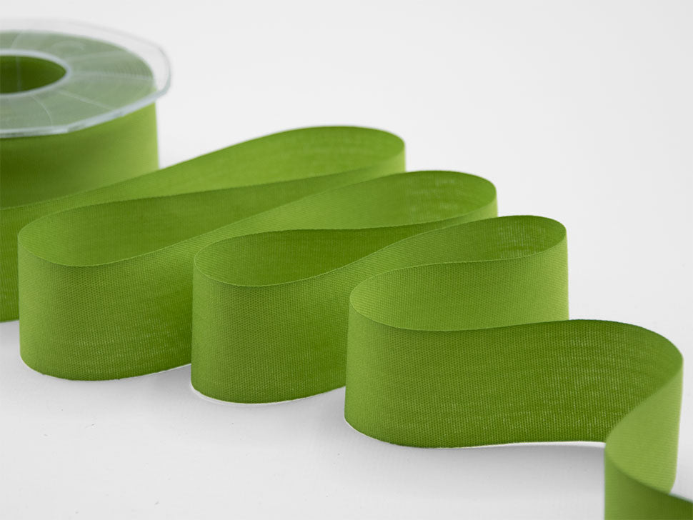 Poly Cotton 35 MM Pistachio Green. The polycotton and natural-looking ribbons are in line with green trends to create packages and decorations with a rustic or rough effect. Much appreciated for its characteristics are the cotton polyester ribbons. Opaque, with a natural appearance, it is pleasant to the touch because it is soft and warm, it feels slightly plush. It works easily and is used more and more often for the creation of luxury gift boxes, for shopper handles, for the creation of wedding favors, for Christmas decorations, for floral decorations and for food packaging. Also appreciated by important fashion brands, it was chosen for the personalization of their ribbon with logo. Like all our ribbons, it ties very easily and does not fray when cut. The cotton-like fabric ribbon is produced in a wide range of colors and heights .. Color code # 139 - PACKED IN 25 METERS REEL
