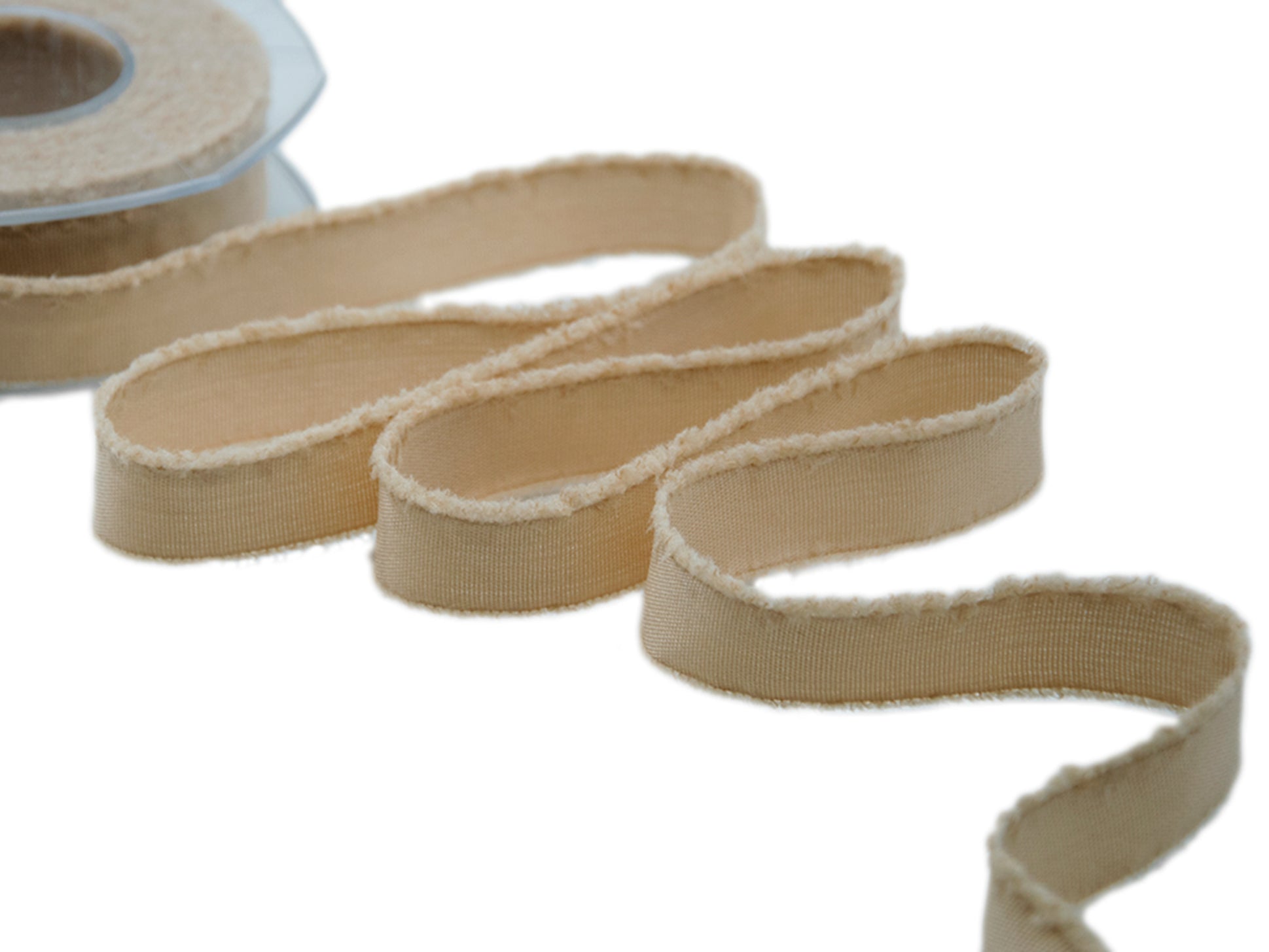 Fringed 23 MM Beige. The F182 fringed ribbon will give you the ability to customize your inimitable shabby chic style creations even more. The fringed ribbon is an opaque ribbon, very pleasant to the touch, with a soft frayed edge. High quality because it is produced in polyester cotton yarn, it seems handmade and it will give a unique look to your creations. These fringed ribbons easily retain their shape when knotted, they are easy to use and suitable for gift boxes, bows, garlands, bouquets, decorations, party favors, clothing accessories, home decor. The range of solid colors of the fringed ribbon is very rich and printed versions are also available (floral patterns, polka dots). Color code # 2 - PACKED IN 15 METERS REEL