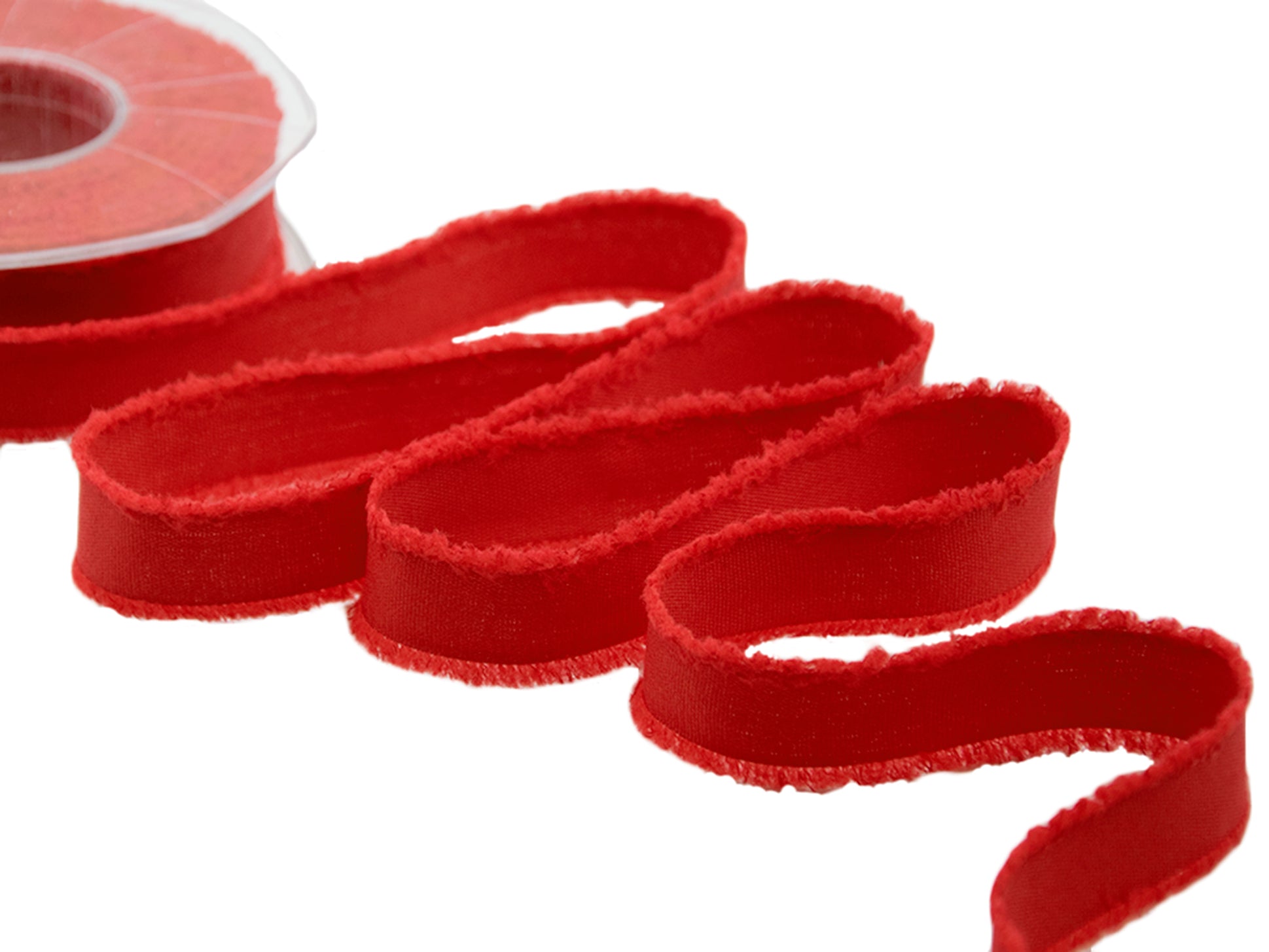 Fringed 23 MM Red. The F182 fringed ribbon will give you the ability to customize your inimitable shabby chic style creations even more. The fringed ribbon is an opaque ribbon, very pleasant to the touch, with a soft frayed edge. High quality because it is produced in polyester cotton yarn, it seems handmade and it will give a unique look to your creations. These fringed ribbons easily retain their shape when knotted, they are easy to use and suitable for gift boxes, bows, garlands, bouquets, decorations, party favors, clothing accessories, home decor. The range of solid colors of the fringed ribbon is very rich and printed versions are also available (floral patterns, polka dots). Color code # 31 - PACKED IN 15 METERS REEL