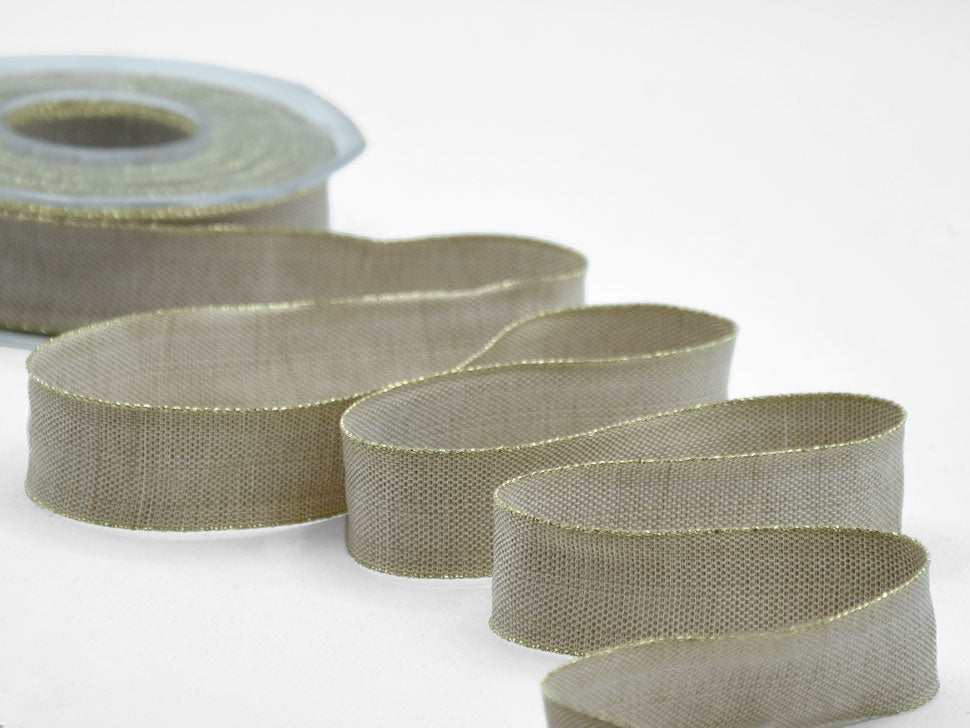 Canvas Cloth 25 MM Gold. It's a soft-colored ribbon. It is refined and serious. Its colors are certainly classic, warm and intimate. You can use it both for your serious gift packages and to embellish a table where you will dine with good red wine. It is a ribbon that recalls the fabrics of the time. The version with a lame border adds a touch of festive joy. Color Code# 102 - PACKED IN 20 METER COIL