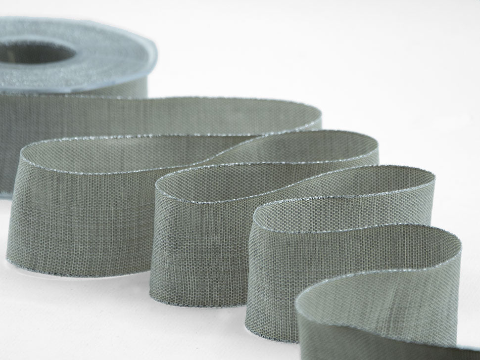 Canvas 40 MM Silver. It is a ribbon with soft colors. It is refined and serious. Its colors are certainly classic, warm and intimate. You can use it both for your serious gift packages and to embellish a table where you will dine with good red wine. It is a ribbon that recalls the fabrics of the past. The version with a lamé border adds a touch of festive cheer. Color code # 101 - PACKAGED IN 20 METERS REEL
