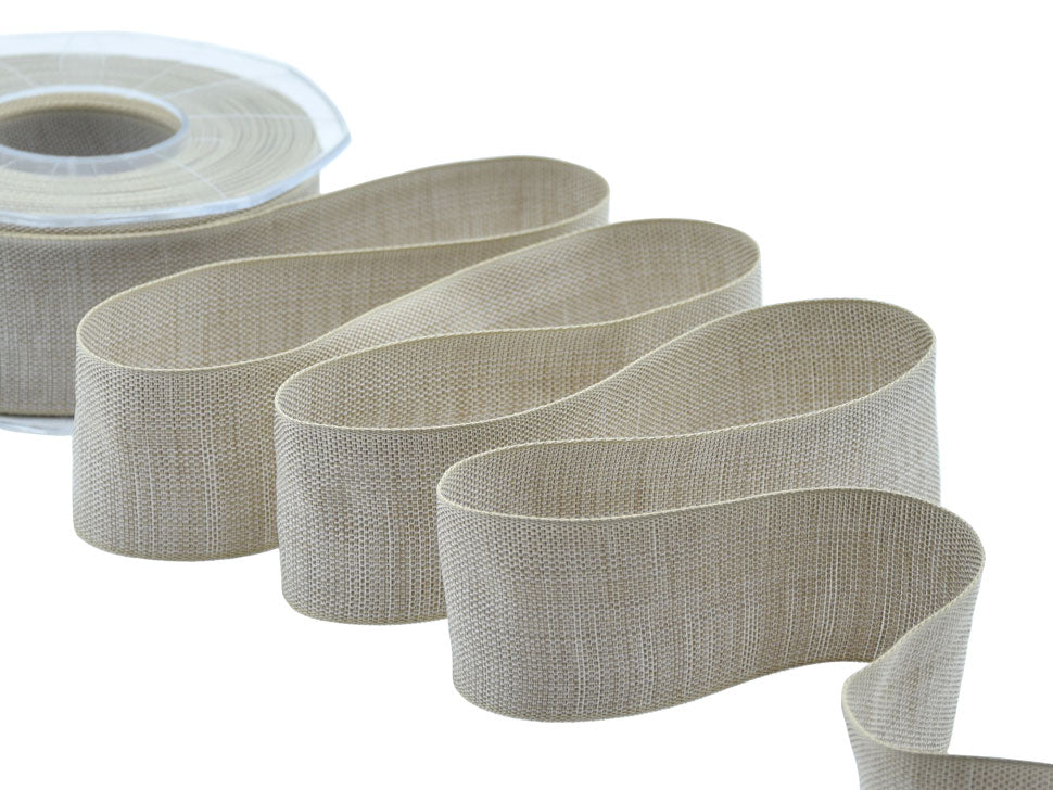 Canvas Cloth 40 MM Beige. It's a soft-colored ribbon. It is refined and serious. Its colors are certainly classic, warm and intimate. You can use it both for your serious gift packages and to embellish a table where you will dine with good red wine. It is a ribbon that recalls the fabrics of the time. The version with a lame border adds a touch of festive joy. Color Code# 2 - PACKED IN 20 METER COIL