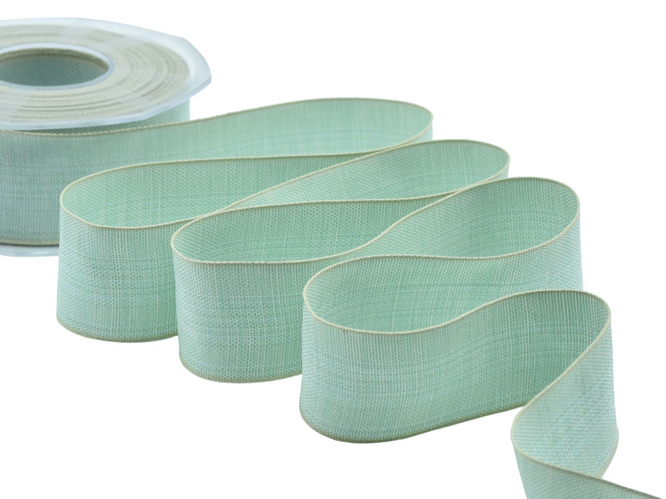 Canvas 40 MM Aquamarine. It's a soft-colored ribbon. It is refined and serious. Its colors are certainly classic, warm and intimate. You can use it both for your serious gift packages and to embellish a table where you will dine with good red wine. It is a ribbon that recalls the fabrics of the time. The version with a lame border adds a touch of festive joy. Color Code# 64 - PACKED IN 20 METER COIL
