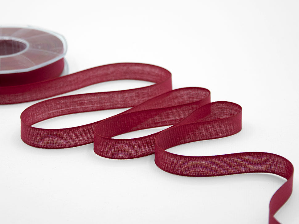 Cotton Veil 15 MM Amaranth. Opaque and transparent fabric like a light cotton, with edges animated by a metallic thread to give more support to your bows. Color code # 46 - PACKAGED IN 25 METERS REEL