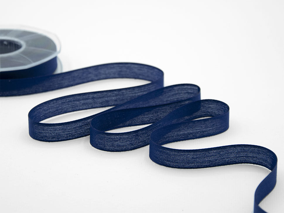 Cotton Veil 15 MM Dark Blue. Opaque and transparent fabric like a light cotton, with edges animated by a metallic thread to give more support to your bows. Color code # 426 - PACKAGED IN 25 METERS REEL
