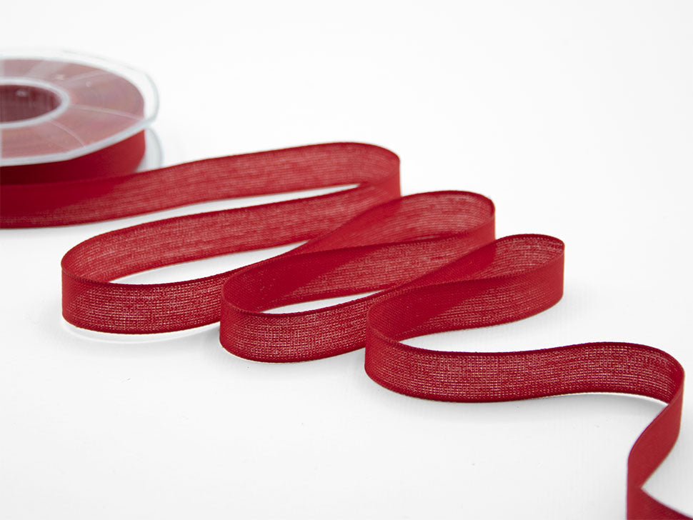 Veil Resin cotton 15 MM Red. Matte and transparent fabric like light cotton, with edges animated by a metal thread to give more support to your bows. Color Code#31 - PACKED IN 25-METER COIL