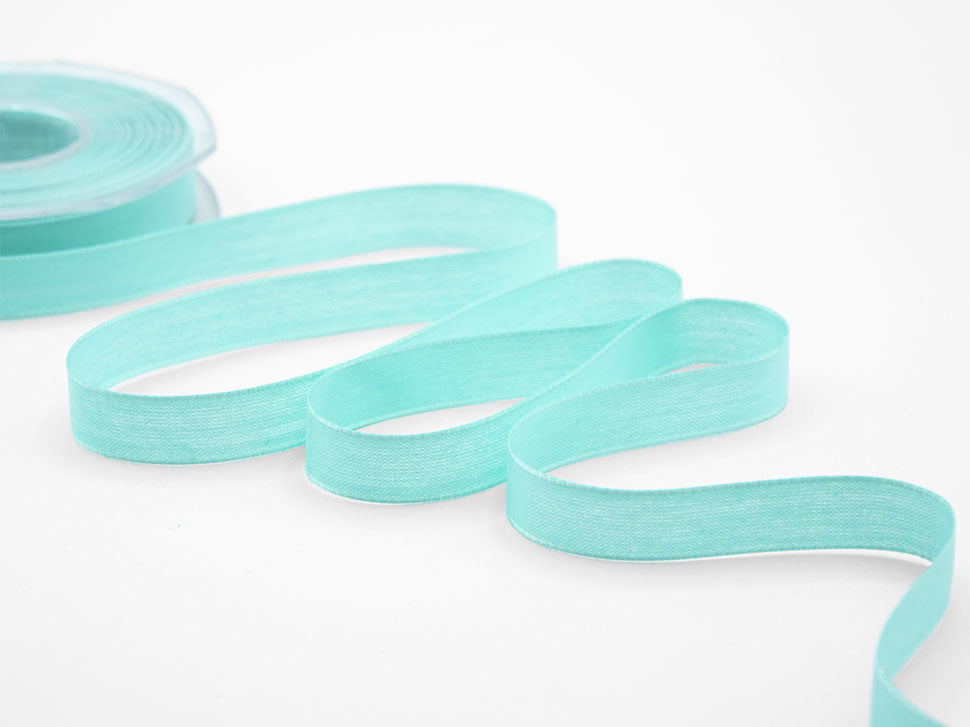 Resinated Cotton Veil 15 mm Aquamarine. Opaque and transparent fabric like a light cotton, with edges animated by a metallic thread to give more support to your bows. Color code # 64 - PACKAGED IN 25 METERS REEL