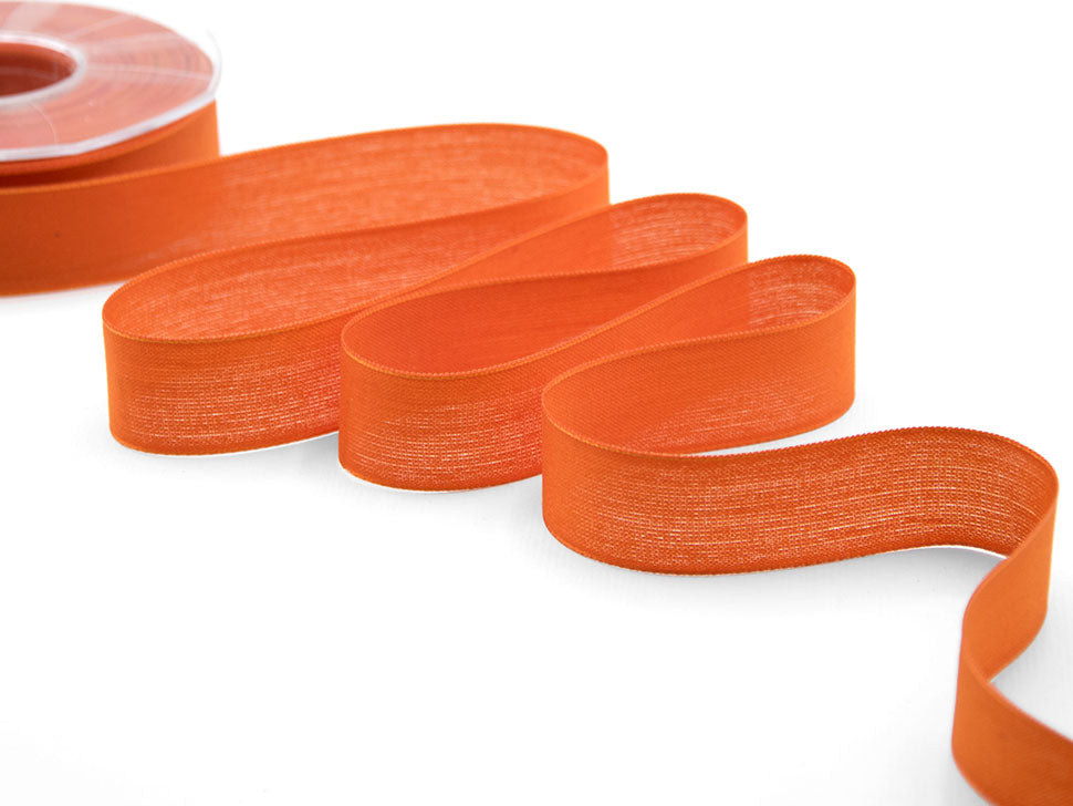 Veil Resin cotton 25 MM Orange. Matte and transparent fabric like light cotton, with edges animated by a metal thread to give more support to your bows. Color Code# 40 - PACKED IN 25 METER COIL