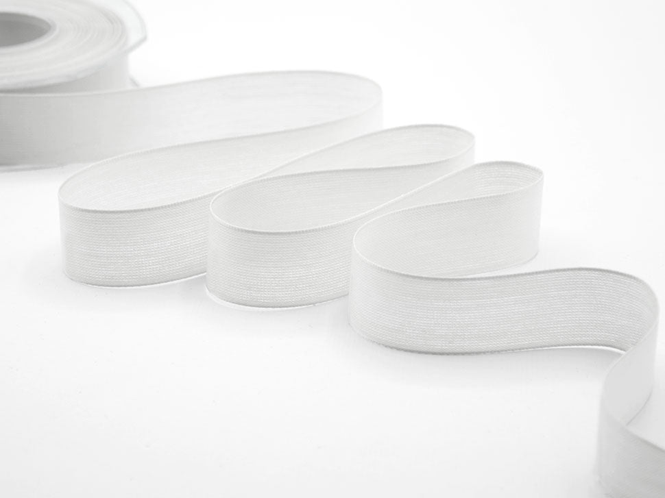 Cotton Veil 25 MM Optical White. Opaque and transparent fabric like a light cotton, with edges animated by a metallic thread to give more support to your bows. Color code # 13 - PACKAGED IN 25 METERS REEL