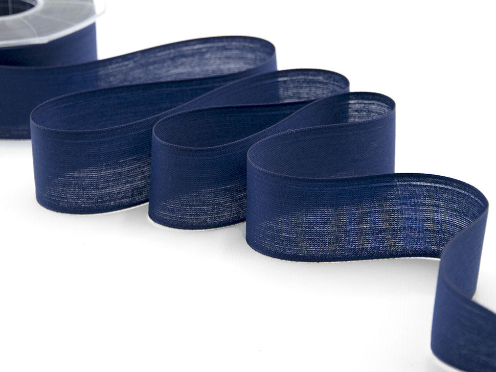 Resin Cotton Veil 40 MM Dark Blue. Opaque and transparent fabric like a light cotton, with edges animated by a metallic thread to give more support to your bows. Color code # 426 - PACKAGED IN 25 METERS REEL