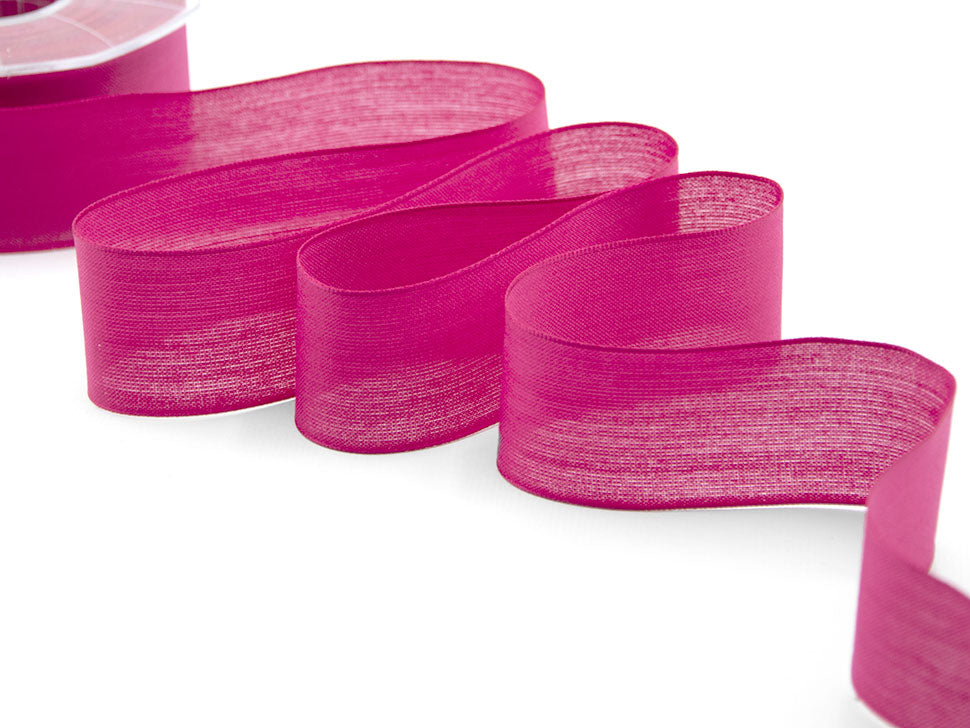 Veil Cotton Resinato 40 MM Fuxia Peonia. Opaque and transparent fabric such as a light cotton, with the edges animated by a wire wire to give more support to your flakes. Code colore# 26-PACKAGED IN COIL FROM METERS 25