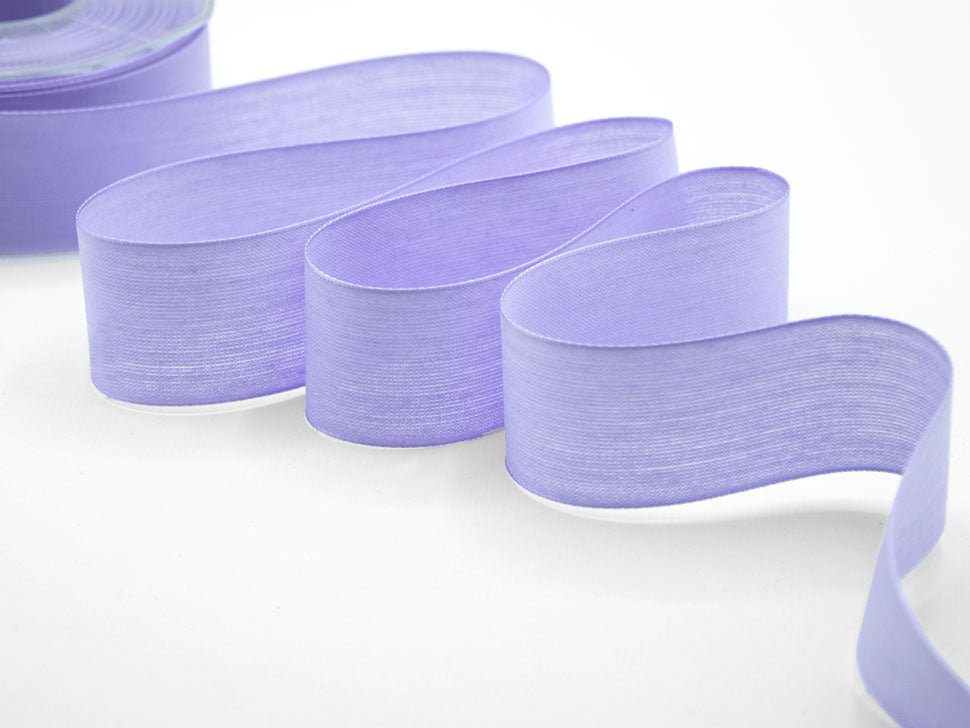 Cotton Veil 40 MM Lilac. Opaque and transparent fabric like a light cotton, with edges animated by a metallic thread to give more support to your bows. Color code # 67 - PACKED IN 25 METERS REEL