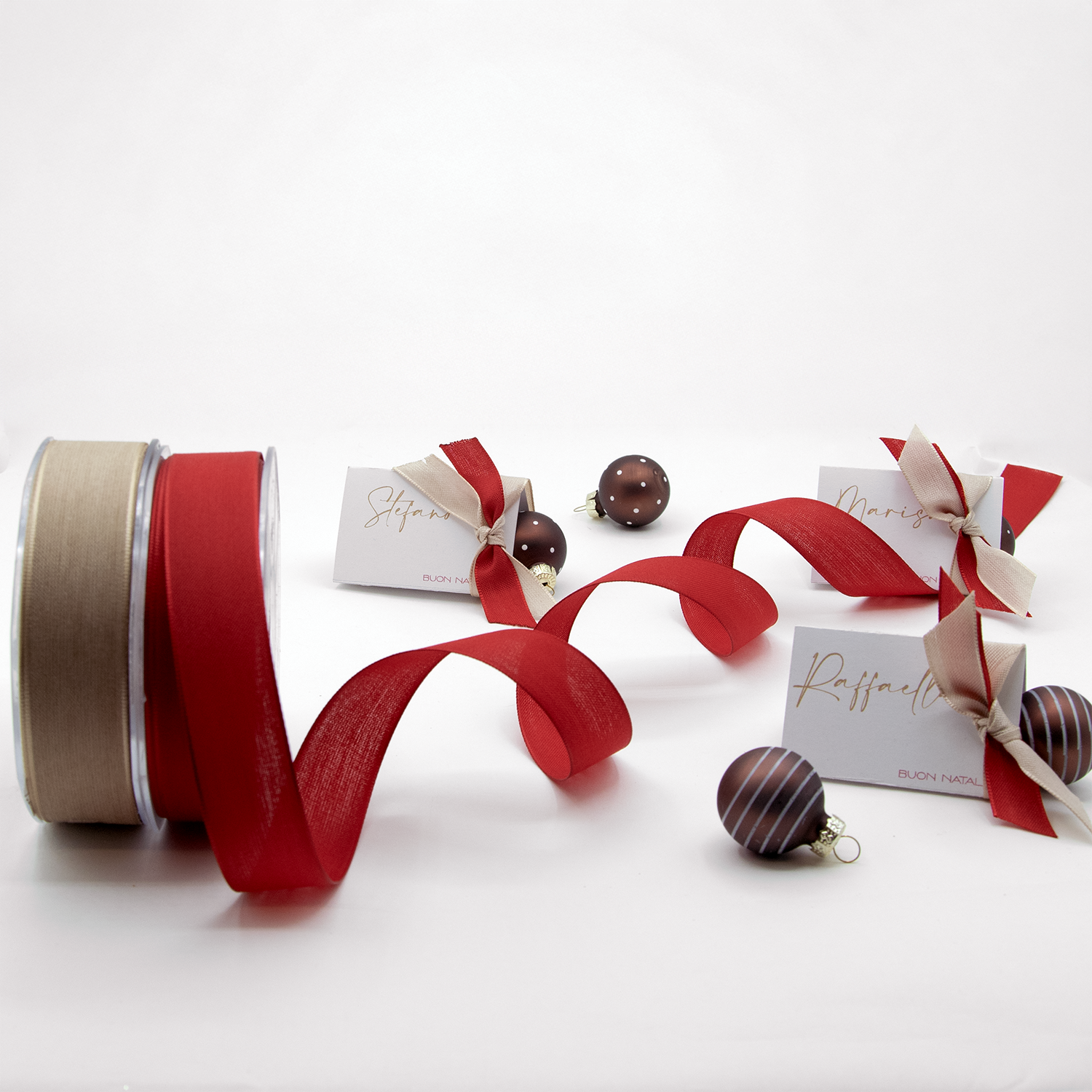 Veil Resin cotton 40 MM Red. Matte and transparent fabric like light cotton, with edges animated by a metal thread to give more support to your bows. Color Code#31 - PACKED IN 25-METER COIL