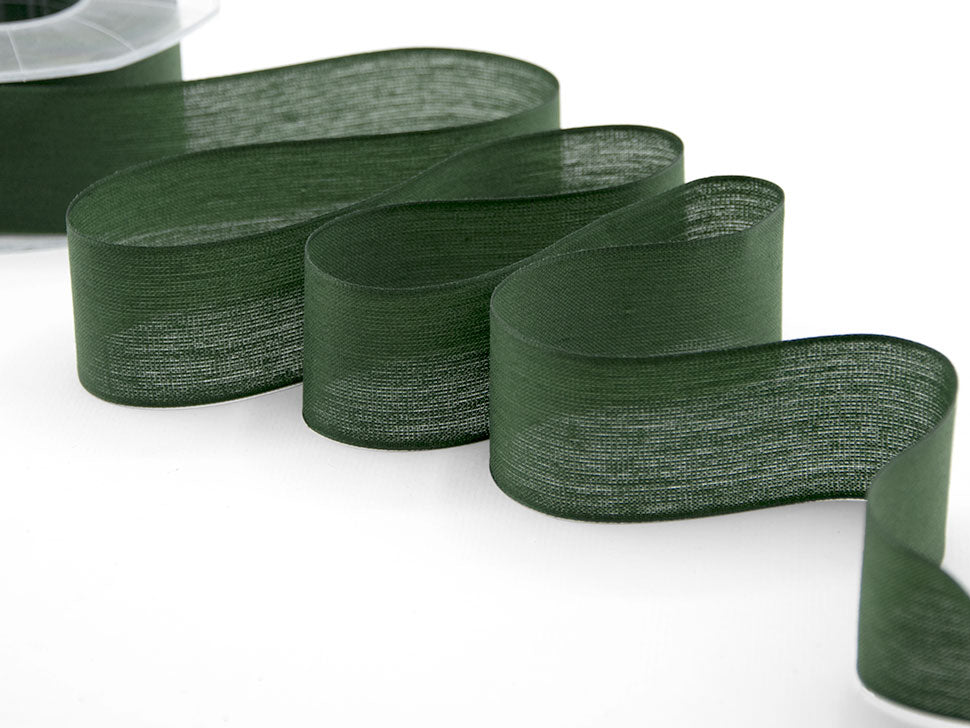 Resin Cotton Veil 40 MM English Green. Opaque and transparent fabric like a light cotton, with edges animated by a metallic thread to give more support to your bows. Color code # 633 - PACKED IN 25 METERS REEL