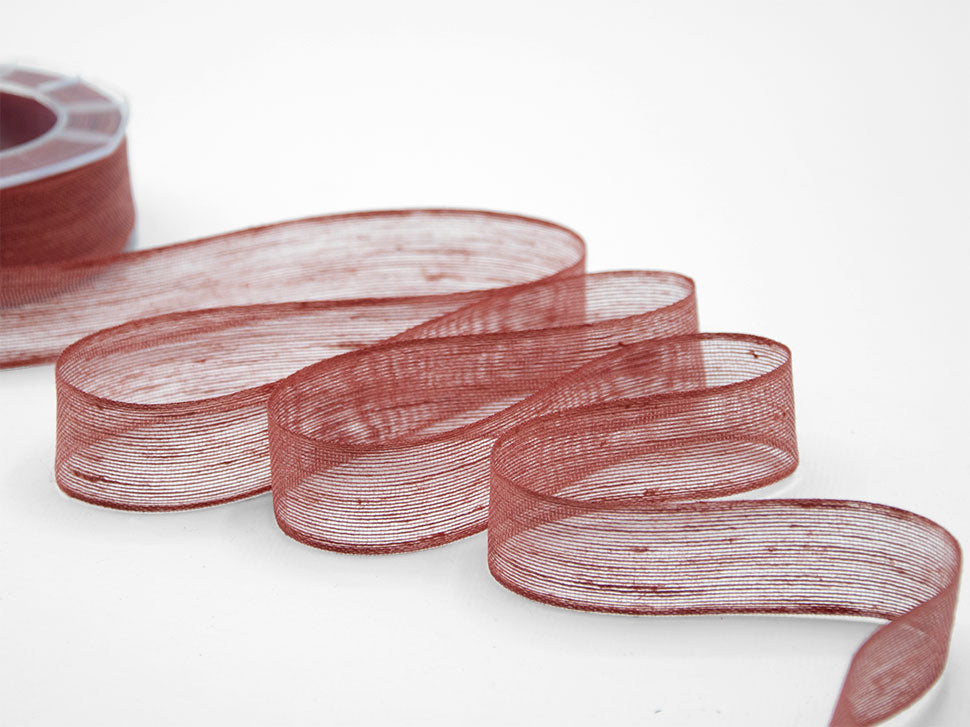 Linen Veil 24 MM Coral Red. It is a very fine linen ribbon, synonymous with nature, reminiscent of lavender crops. It is very easy to work with. It has a warm, classic and simple color range and is slightly transparent. With a rustic appearance, it is actually very elegant and combines the ancient with the modern, the natural tradition with the most refined elegance. It is the ideal complement for handcrafted products and can also be used very well in the most elegant ceremonies for which a lamé version is also available. This tape conveys warmth and simplicity. The natural linen ribbons are very characteristic thanks to their natural colors and their rustic and elegant appearance, perfect for giving a chic and natural effect to any type of decoration. Just play with your imagination and use these straps for the realization of various DIY and craft projects; they are perfect for the rustic, country, vintage and shabby theme and for making favors: baptism, communion, confirmation, graduation, wedding, eighteenth, engagement. Products with high quality material. Color code # 481 - PACKED IN 15 METERS REEL