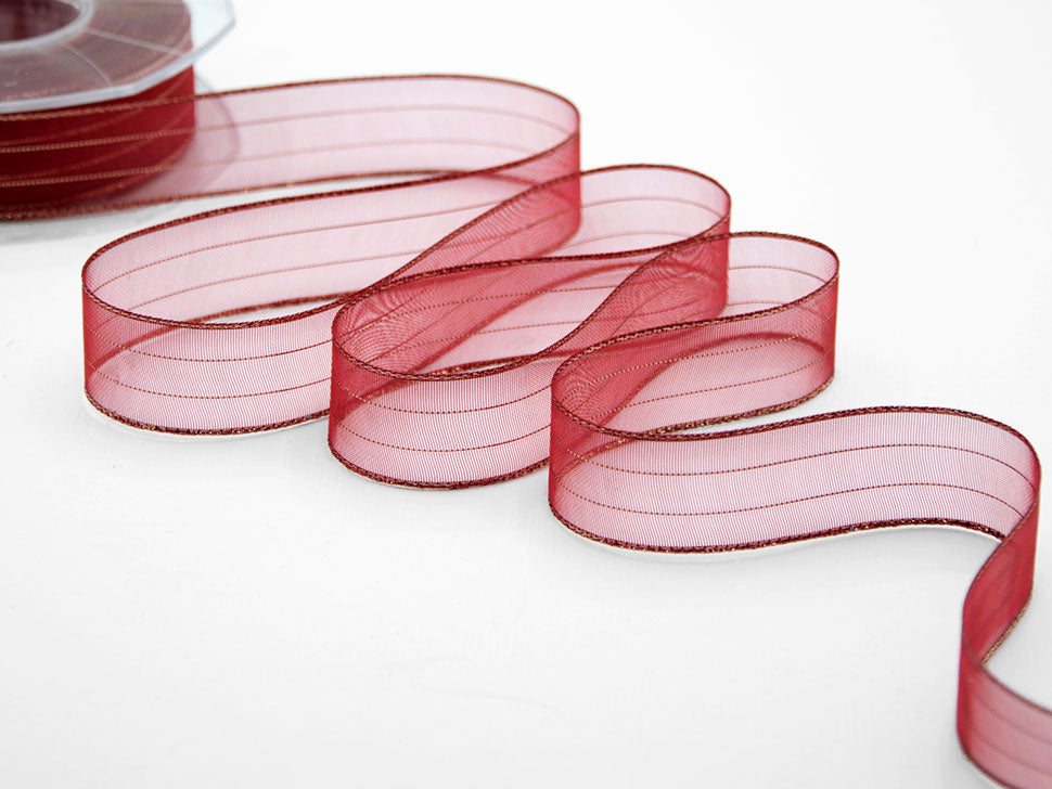 Elegant Veil 25 MM Red. Wonderful organza with gold threads, elegant and refined. Color code # 31 - PACKAGED IN 25 METERS REEL