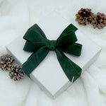 15mm Double Velvet Ribbon in English Green. Double velvet ribbon is ideal for creating bows and decorations for the autumn and Christmas seasons. Warm and pleasant to the touch, it can be used for a variety of purposes, from simply wrapping gifts and decorating the tree to personalizing handmade presents. Being double-sided, the velvet makes the ribbon very rich and beautiful on both sides. Available in a wide range of warm colors and various widths. Color code #633. Packaged in a 7-meter reel.