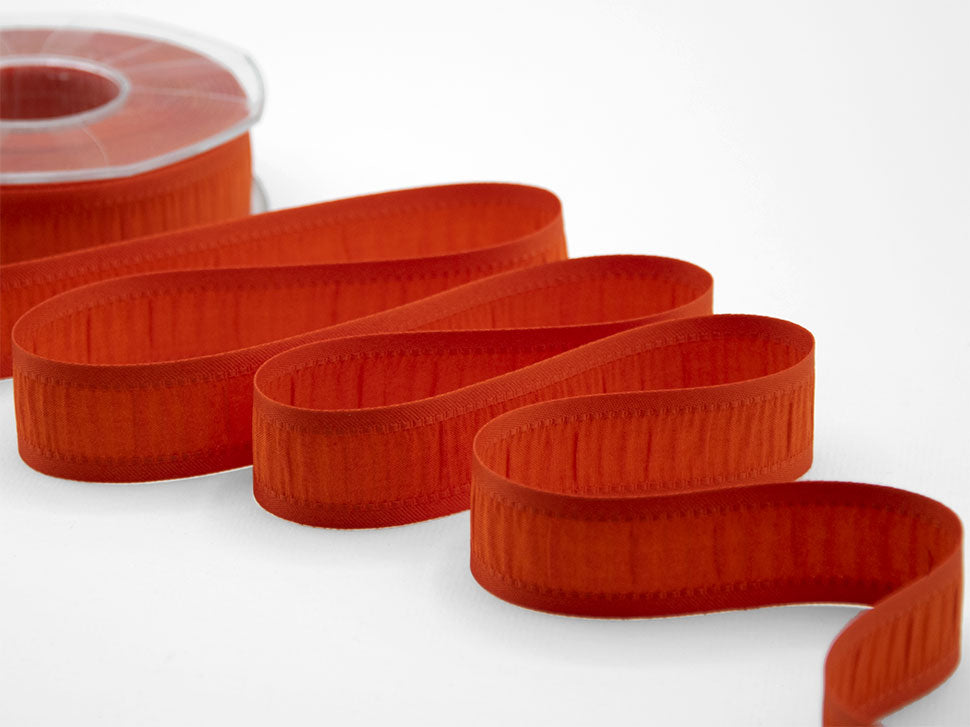 Silk Reinforced Edges 25 MM Orange. Silky fabric ribbon for elegant decoration, wedding, birth, bows, party favors. Color code # 40 - PACKED IN 20 METERS REEL