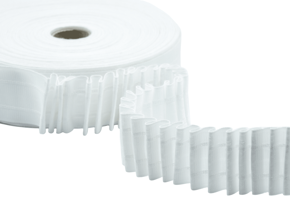 Les rubans fronceurs sont l’accessoire idéal et fondamental pour donner une touche particulière à chaque type de rideau, c’est pourquoi il est essentiel de choisir le bon ruban. De nombreux modèles sont disponibles sur le marché, tous avec la même fonction et la même méthode d’application, mais chacun est adapté pour réaliser un type de frisage différent. Le ruban le plus connu et le plus utilisé est certainement le ruban multi-poche : il est possible d’insérer les crochets dans les poches dans de multiples positions. C’est un ruban en polyester, il se présente comme un ruban blanc avec des poches où insérer les crochets et a deux fils à tirer pour le frisage. Facile à coudre, parfait pour créer des rideaux design dans chaque pièce de la maison, vous pouvez l’utiliser sur tous les types de tissu léger, moyen et lourd. Pour obtenir sur la tente le frisage il suffit d’étendre et coudre le ruban sur le bord supérieur de la tente, le rapport de l’étendu à frisé est 2:1, deux mètres de tente étendue couvrent un mètre de fenêtre après le frisage. Cette mesure est indicative dans la mesure où plus les fils sont tirés, plus grand sera le frisage obtenu. Le ruban est emballé en rouleaux de 50 mètres, facile à utiliser car bien résistant et rigide, il peut être lavé à la machine à laver à 40 degrés centigrades et repasser sans aucun problème. Il reste inchangée dans le temps. Il est disponible en version blanche ou transparente (pour les rideaux plus légers comme l’organza) et à deux cordes (pour les rideaux plus lourds) dans les hauteurs 65mm, 75mm, 80mm, 90mm et 100mm. Ceci est la version blanche de 50 mm de hauteur.