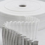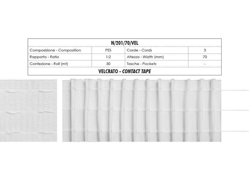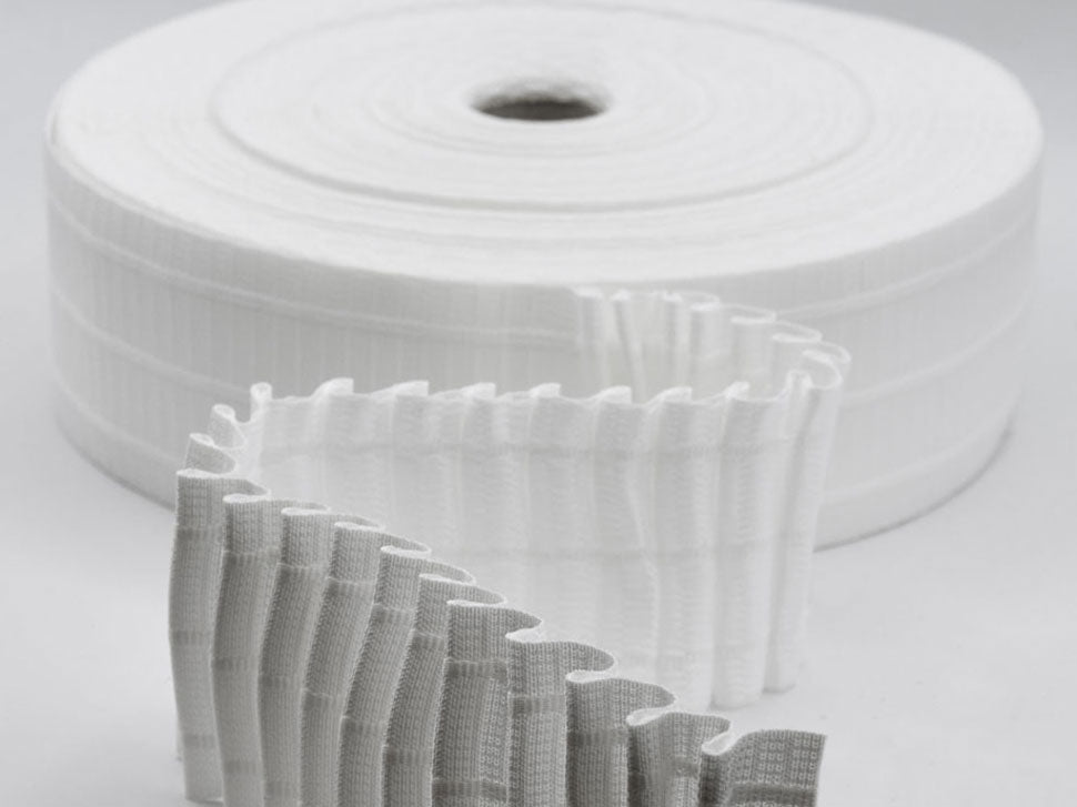 Les rubans fronceurs sont l'accessoire idéal et indispensable pour donner une touche spéciale à tout type de rideau, il est donc essentiel de choisir le bon ruban. Il existe de nombreux modèles sur le marché, tous avec la même fonction et la même méthode d'application mais chacun adapté à la création d'un type de curling différent. Le ruban le plus courante a des poches pour que les crochets et les cordes s'enroulent automatiquement et régulièrement, de plus il est possible d'insérer les crochets dans les poches dans plusieurs positions. C'est un ruban en polyester, il ressemble à un ruban avec des poches où vous pouvez insérer les crochets et a deux fils à tirer pour le curling. Facile à coudre, parfait pour créer des rideaux de design dans n'importe quelle pièce de la maison, il peut être utilisé sur tous types de tissus légers, moyens et épais. Pour obtenir le frisage sur le rideau, il suffit d'étaler et de coudre le ruban sur le bord supérieur du rideau, le rapport de propagation à bouclé est de 2:1, soit deux mètres de rideau tendu couvrant un mètre de fenêtre après le curling. Cette mesure est indicative car plus les fils sont tirés, plus le curling obtenu est importante. Le ruban est conditionné en rouleaux de 50 mètres, facile à utiliser car bien résiné et rigide, il peut être lavé en machine à 40 degrés centigrades (40 °C) et repassé sans problème. Il reste inchangé au fil du temps. Il est disponible dans la version blanche ou transparente (pour les rideaux plus légers comme l'organza) et deux, trois ou quatre cordes (pour les rideaux plus lourds) dans des hauteurs de 30 mm à 170 mm. Il s'agit de la version blanche de 70 mm de haut.