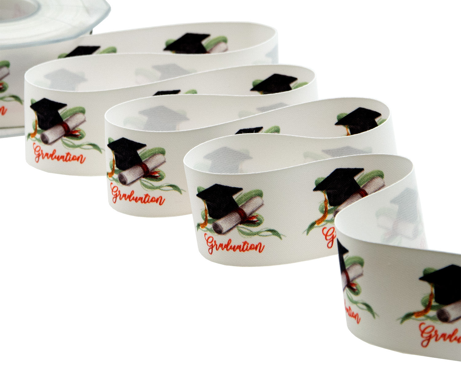 Impression de remise de diplôme en satin de soie 40 mm. Le satin de soie est un ruban très délicat, idéal pour tous types d'emballages. Grâce à sa légèreté et à son aspect soyeux, il permet de créer des cadeaux d'invités et des décorations pour des cérémonies et événements élégants. Ses lisières lisses et sa texture mate lui confèrent une douceur extrême, le rendant facile à travailler et idéal pour la création de nœuds et de bordures. Présenté ici en impression numérique.Code couleur : 24/31 - Conditionné en bobines de 15 mètres.
