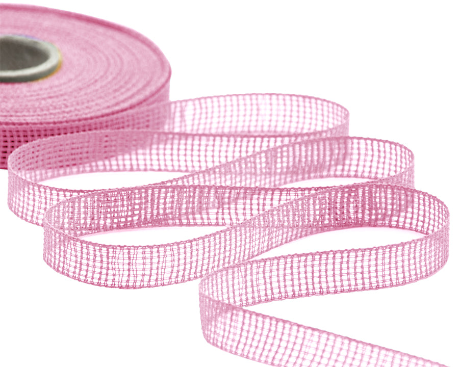 Gaze de papier rose pâle 15 mm. Sa large structure en mailles permet de créer des nœuds structurés et légers. Son papier texturé lui confère un toucher naturel et est particulièrement adapté aux emballages cadeaux et aux compositions florales 100 % écologiques. Nos rubans et cordons en papier sont des produits éco-responsables, entièrement réutilisables. Code couleur n° 20. Conditionnés en bobines de 20 mètres.