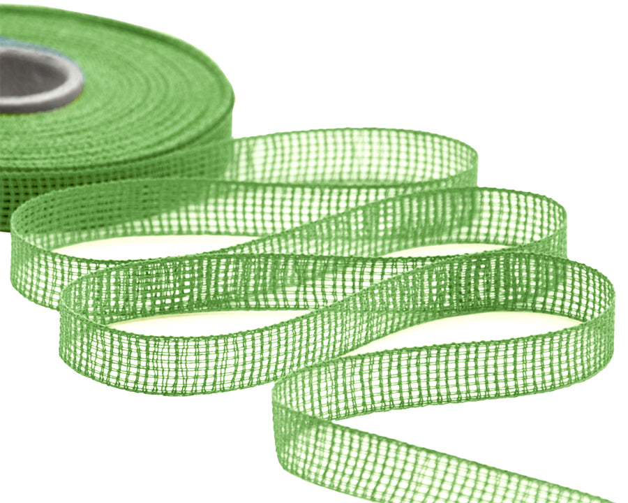 Gaze de papier vert pomme 15 mm. Sa large structure en mailles permet de créer des nœuds structurés et légers. Son papier texturé lui confère un toucher naturel et est particulièrement adapté aux emballages cadeaux et aux compositions florales 100 % écologiques. Nos rubans et cordons en papier sont des produits éco-responsables, entièrement réutilisables. Code couleur n° 548. Conditionnés en bobines de 20 mètres.