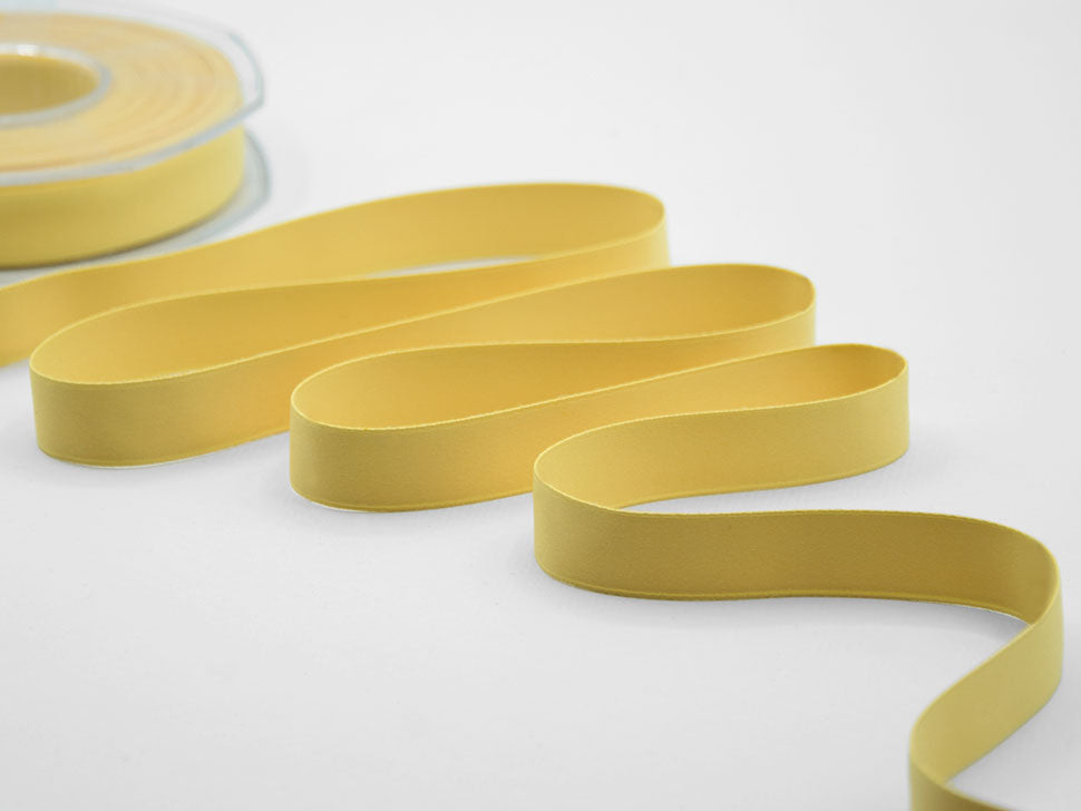 Mat double satin de 15 mm jaune. Si le double satin furlanis est le protagoniste de l'emballage, le satin de furlanis double opaque sublime sa renommée qui améliore tous les mérites avec l'ajout de cette touche soyeuse mate extrêmement raffinée. C'est une bande de tissu avec de nombreux filets comme la soie, très doux, convient à n'importe quel imprimé, avec des files d'attente de coupe nettes extrêmement précises, belle au travail, très courant. Code couleur # 126 - Emballé dans une rouleau de 20 mètres