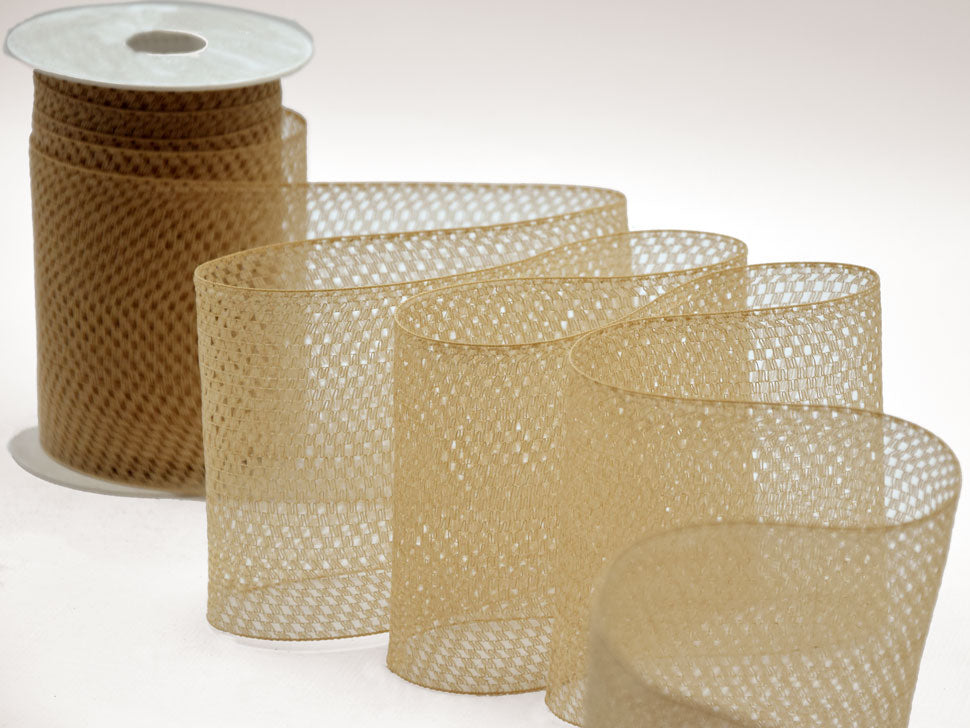 Antares 100 MM Beige. Le maillage mince, avec la texture dense de damier, approprié pour des arcs et l’empaquetage floral, correspond à toutes les cartes d’enveloppement de cadeau. Code couleur# 2 - EMBALLÉ DANS LA BOBINE DE 10 MÈTRES
