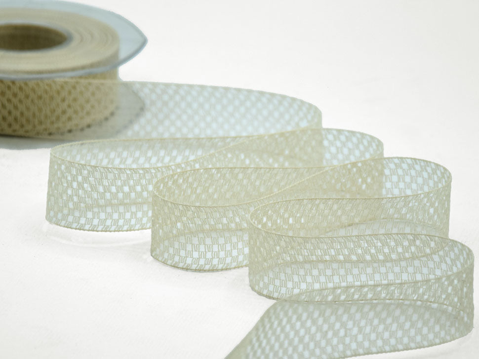 Antares 20 MM Ivoire. Le maillage mince, avec la texture dense de damier, approprié pour des arcs et l’empaquetage floral, correspond à toutes les cartes d’enveloppement de cadeau. Code couleur# 35 - EMBALLÉ DANS LA BOBINE DE 25 MÈTRES