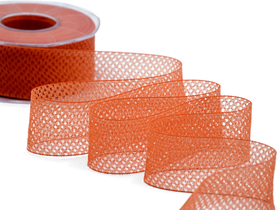 Antares 40 MM Pêche Orange. Le maillage mince, avec la texture dense de damier, approprié pour des arcs et l’empaquetage floral, correspond à toutes les cartes d’enveloppement de cadeau. Code couleur# 41 - EMBALLÉ DANS LA BOBINE DE 25 MÈTRES