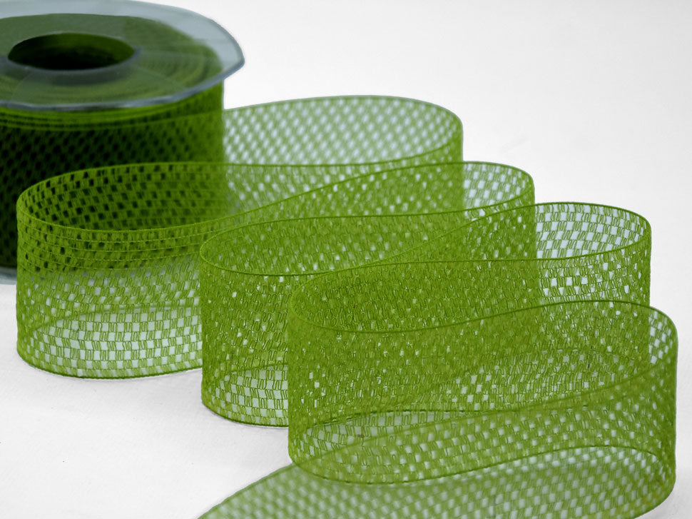 Antares 40 MM Vert pistache. Filet fin, à la texture dense avec un effet damier, adapté aux nœuds et aux emballages floraux, il se marie bien avec tous les papiers cadeaux. Code couleur # 139 - EMBALLÉ EN BOBINE DE 25 MÈTRES