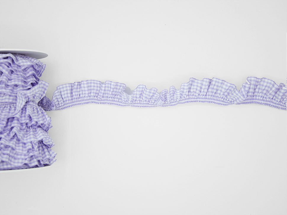 Bamby avec élastique 25 MM Lilas. Il s’agit d’un ruban à coché, également appelé vichy, adapté pour une utilisation pour les décorations pour enfants, tels que les arcs de naissance pour bébé et bébé, ou, dans d’autres couleurs, pour le pays et l’emballage rustique. Dans cette version, il est présenté avec l’élastique sur un bord pour former un rouge très confortable à appliquer sur les bords. Code couleur# 67 - EMBALLÉ DANS LA BOBINE DE 5 MÈTRES