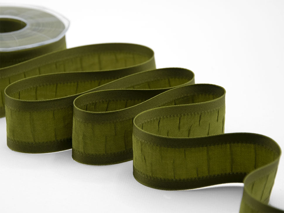 Bords renforcés de soie 38 mm vert mousse. Ruban en tissu soyeux pour décoration élégante, mariage, naissance, noeuds, cotillons. Code couleur # 39 - EMBALLÉ EN BOBINE DE 20 MÈTRES