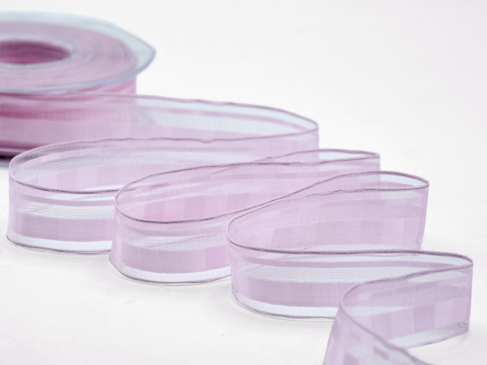Velo Fiume Con Quadretto 25 MM Rosa Baby. Ruban en voile et satin aux bords animés et design mondrian en carrés, adapté aux décorations florales. Code couleur# 20 - EMBALLÉ DANS LA BOBINE DE 25 MÈTRES