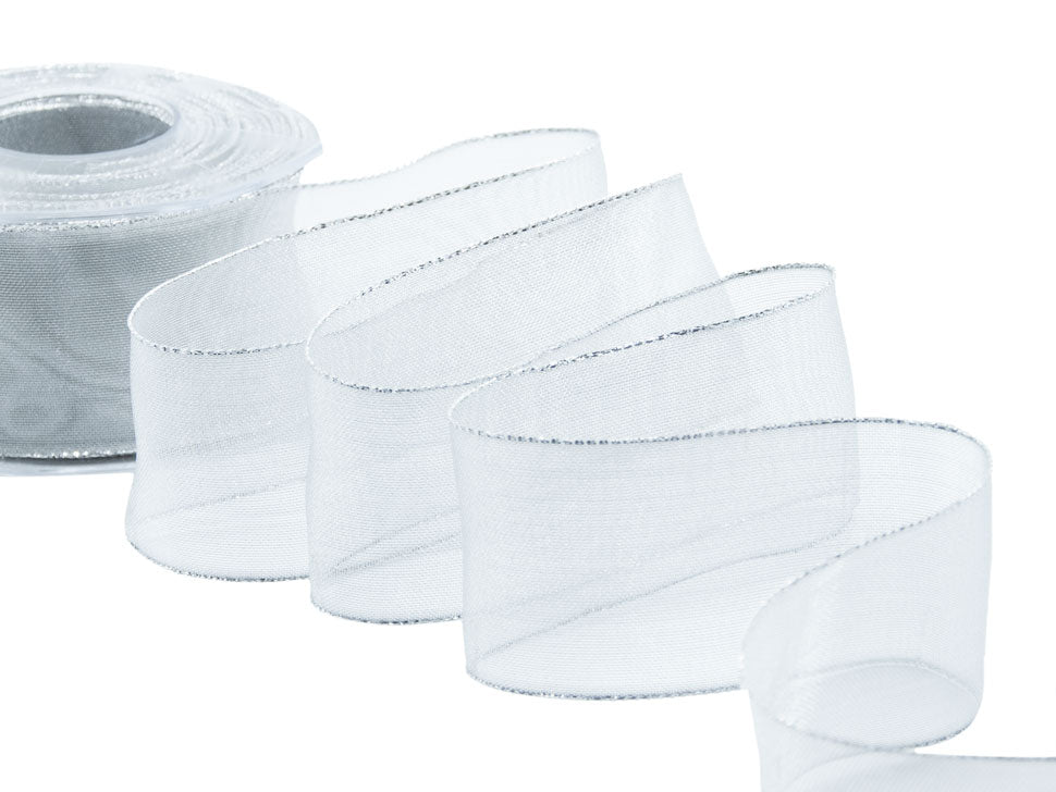 Veil Lame Animated 50 MM Argent. Le ruban voile lamé est un tissu à la texture fine et transparente, très brillant et scintillant.