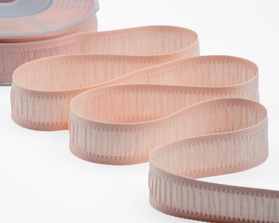 Plisse 25 MM Albicocca Chiaro. Nastro in tessuto plissé per decorazioni eleganti, matrimoni, nascita, fiocchi, bomboniere plisettate. Codice colore# 121 - CONFEZIONATO IN BOBINA DA METRI 20